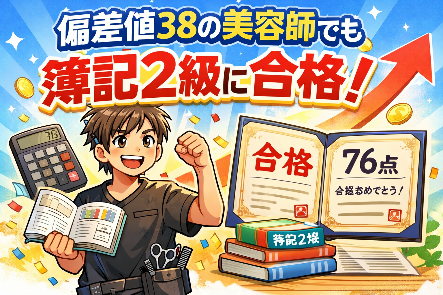 偏差値38の現役美容師が、独学で簿記2級に合格した経験談を書いていきます。